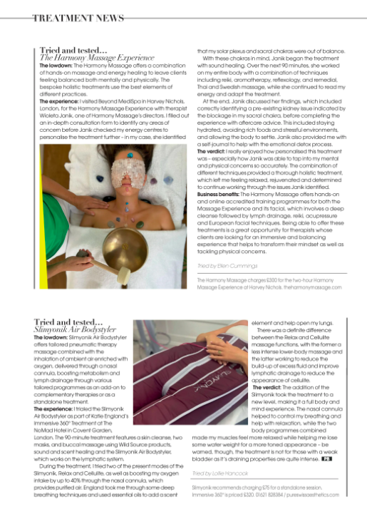 It was great to see two fabulous treatment reviews of the SLIMYONIK® AIR Bodystyler used in Katie England’s Immersive 360° Treatment at the NoMad Hotel, London, as well as a wonderful BYONIK® review used within a treatment at Lisa Franklin Clinic Privé.
