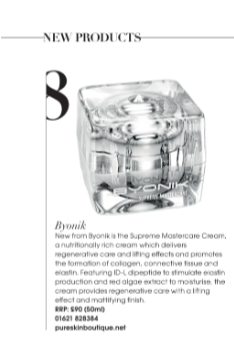 Top beauty and aesthetics industry publication, Professional Beauty featured the new UK launch of the BYONIK® SUPREME Mastercare in their ‘Face The Future’ round-up of new launches.
