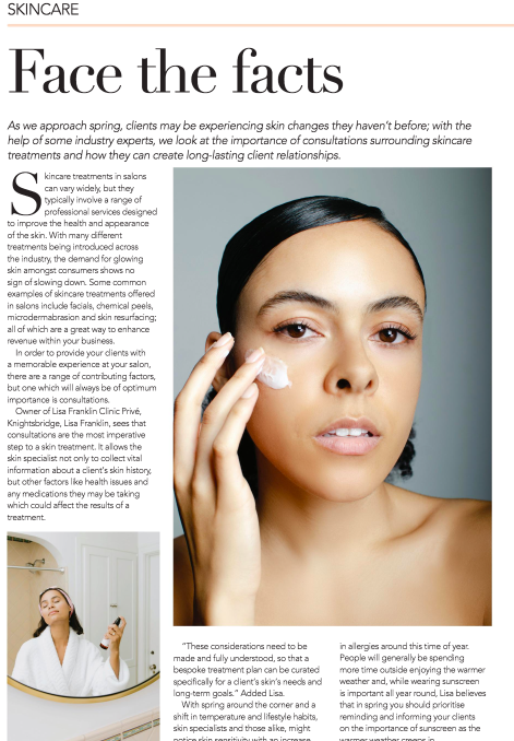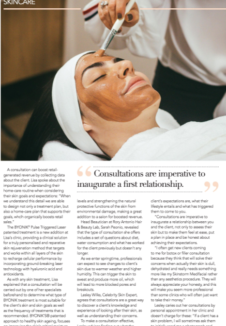 Top beauty industry magazine The Salon Magazine featured quotes from UK BYONIK® Ambassador Lisa Franklin on the importance of in-depth consultations and how only then they can prescribe the most suitable BYONIK® treatment.\