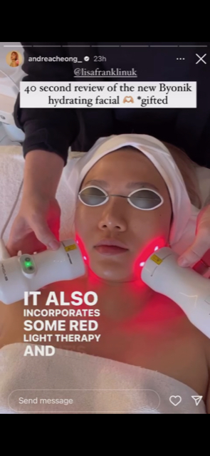 Top fashion and beauty influencer @andreacheong_ (124K followers) went in to experience the Lisa Franklin Healthy Ageing Treatment featuring the BYONIK®.