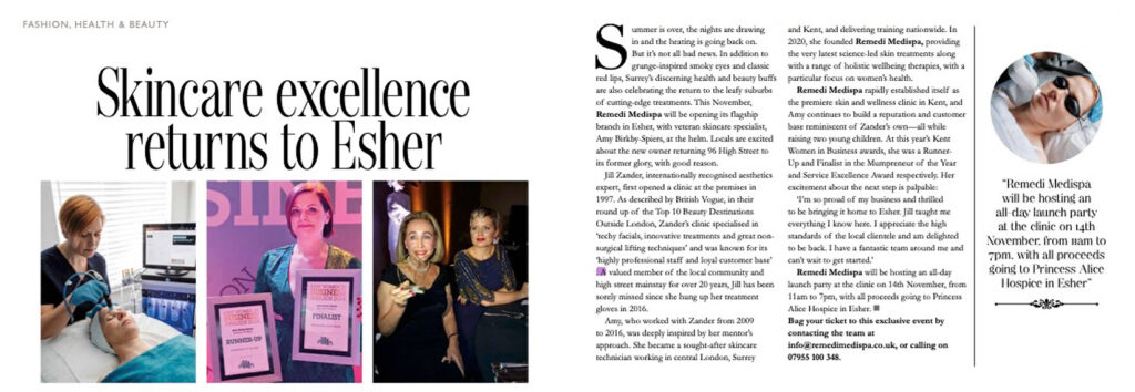 Congratulations to Amy Spiers and her team who launched into their second home in Esher this month.  Remedi Medispa has now officially opened its doors at the iconic Jill Zander Clinic in Surrey, an incredibly nostalgic moment for Amy and the roots of where it all started. We look forward to supporting Amy’s success in her new home and giving new and old patients of the clinic the DUO ELITE ‘glow up’.